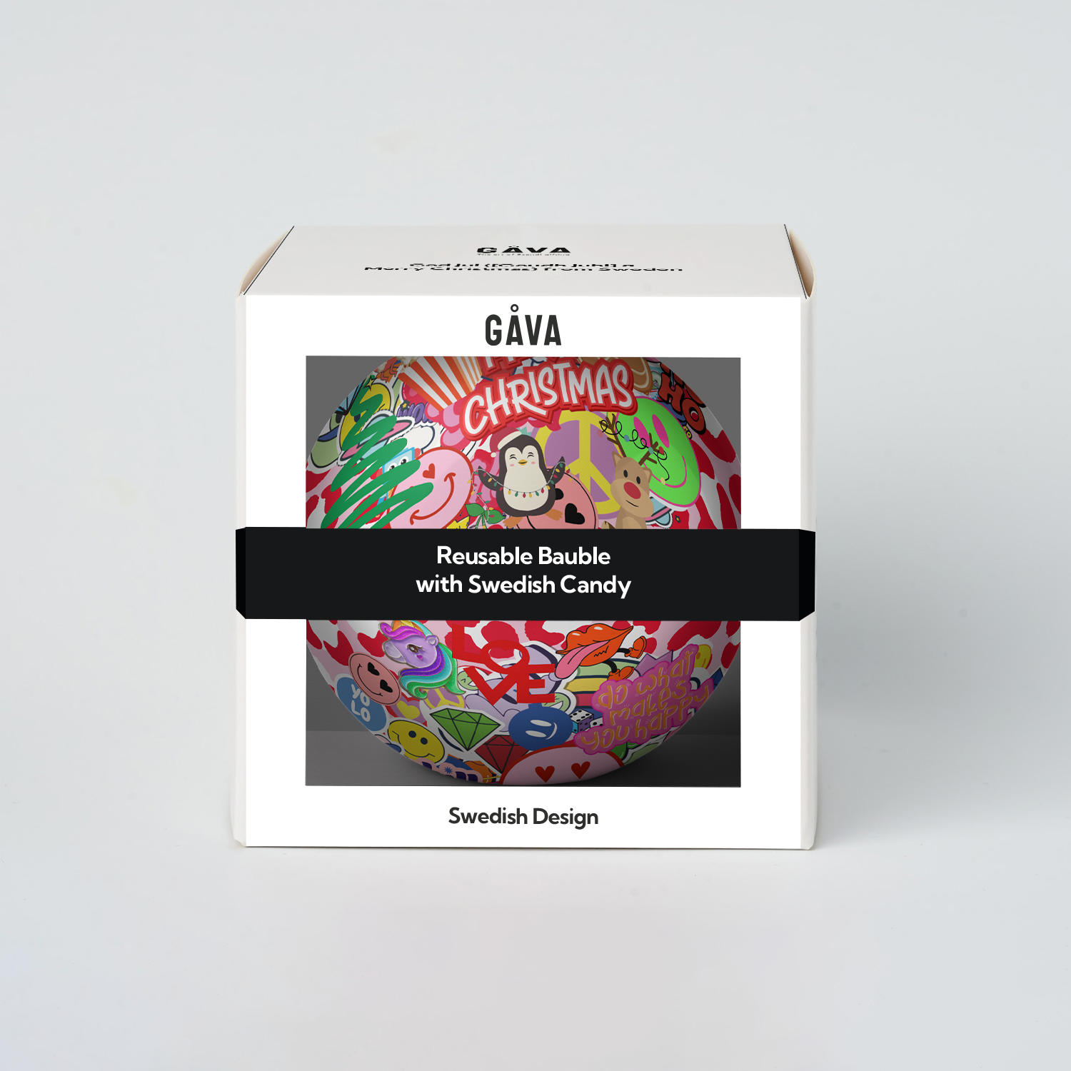 Christmas Baubles by Gåva are reusable baubles in Swedish design filled with a choice of Swedish Chocolates, Swedish Candy or Chocolate Truffles.