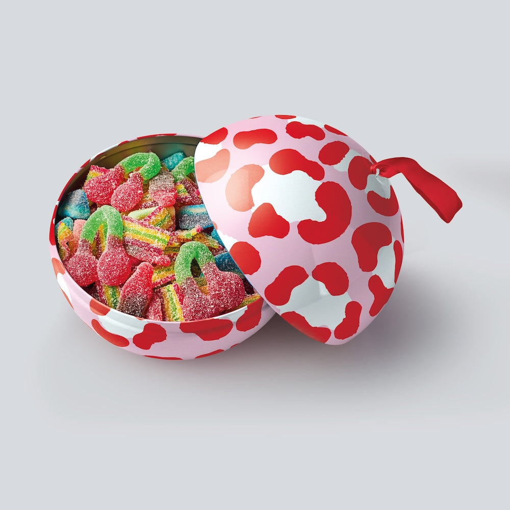 Straight from Santa’s workshop (well, almost). This big, shiny 20cm tin bauble is bursting with Christmas magic and half a kilo of delicious Swedish candy.