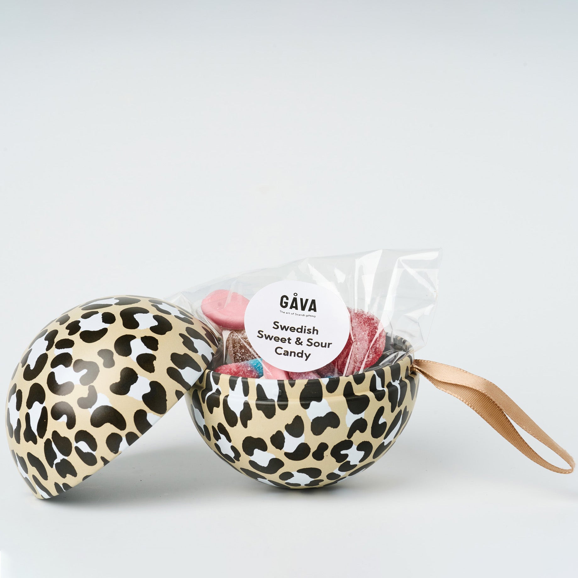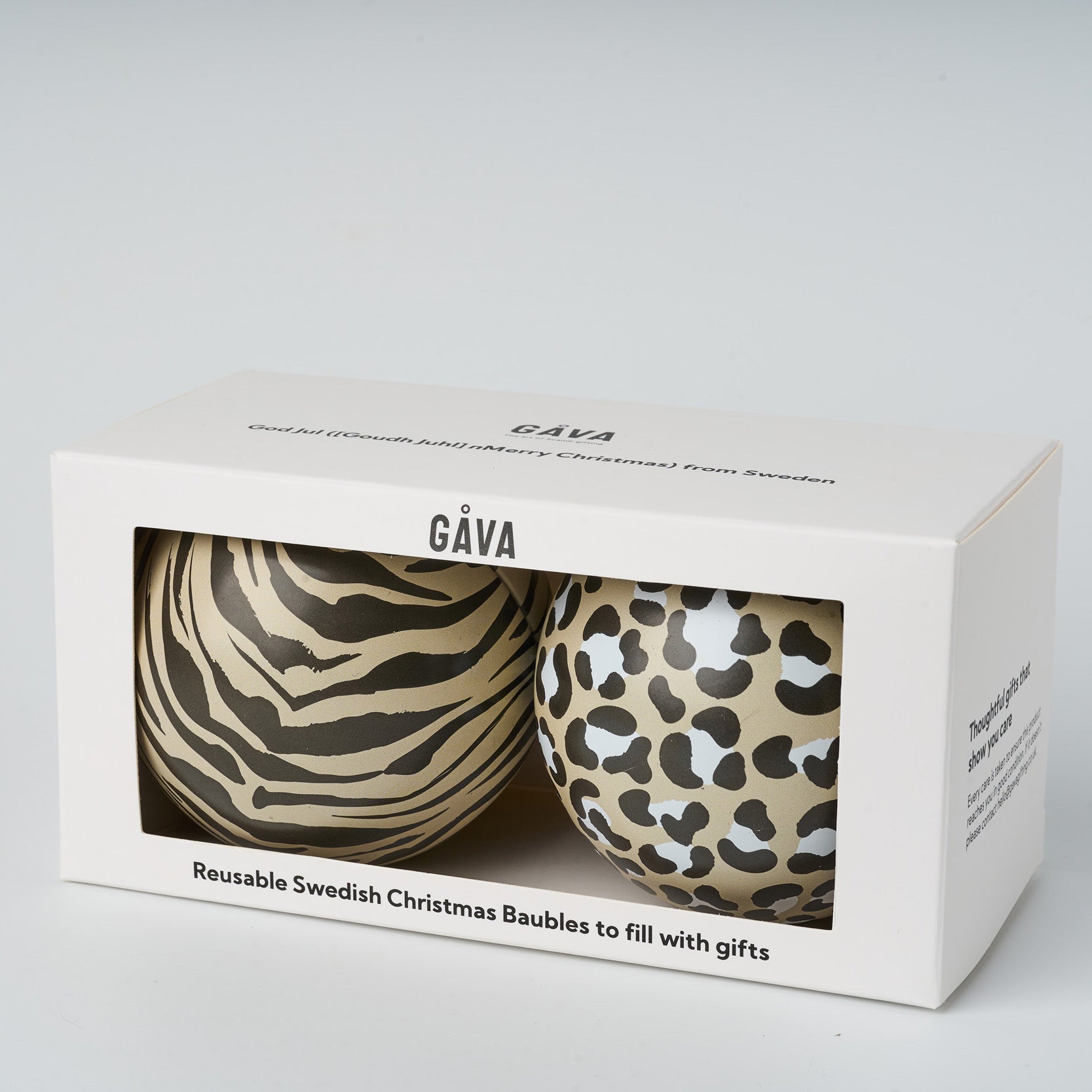 Duo of baubles in Swedish design filled with a choice of Swedish Chocolates, Swedish Candy or Chocolate Truffles