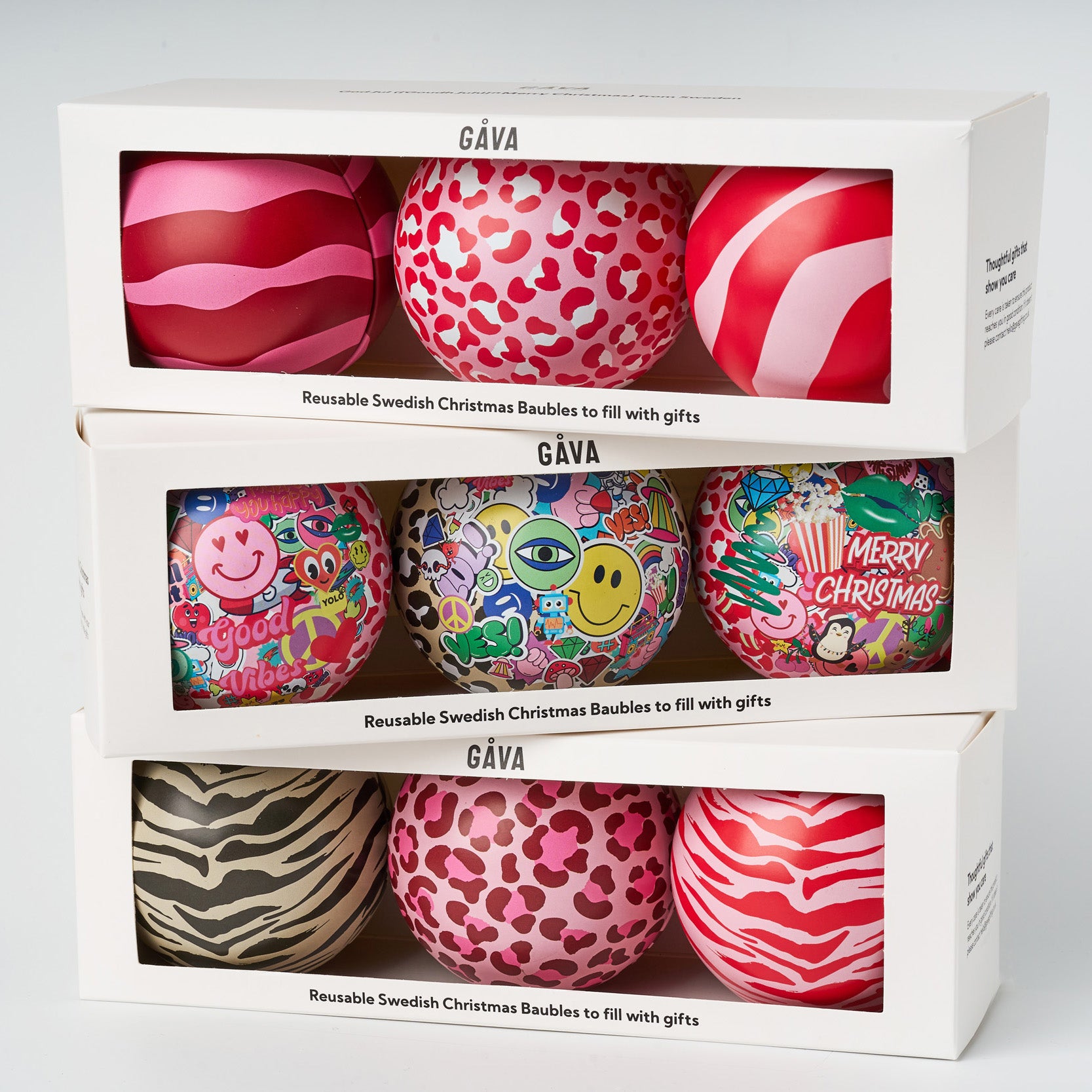 Double the warmth, triple the tradition. This trio pairs two Glögg baubles, inspired by Sweden’s beloved mulled wine, and Arne, a tribute to the iconic Christmas Eve TV host. Together, they bring comfort, nostalgia, and Scandinavian charm to your celebrations. With leopard and zebra prints making them pop against the tree.