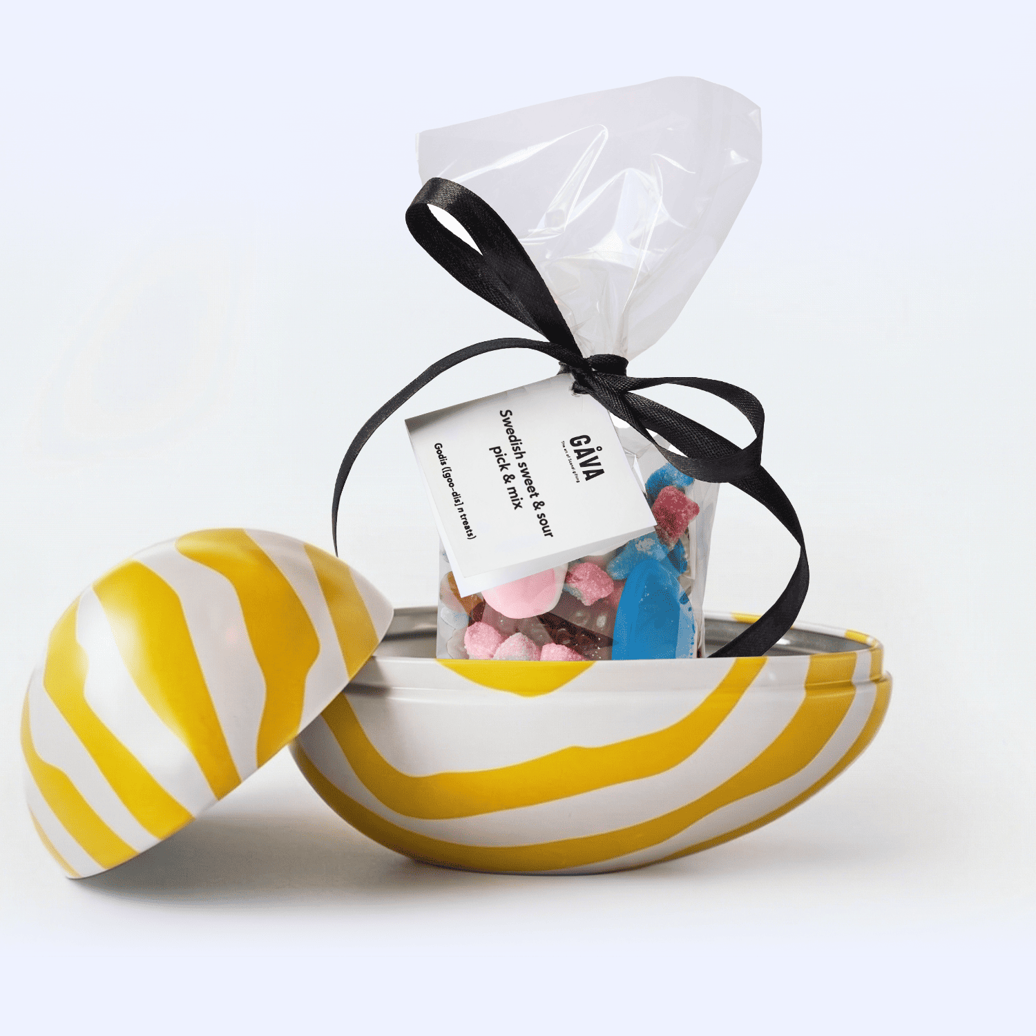 Perhaps the most Easter of the Äggs in our Stockholm Collection, Zebran comes adorned with stripes as bright as a freshly-hatched chick. This reusable tin egg will look fantastic next to the daffodils on your table for years to come - just fill it with fresh treats each time it comes out.